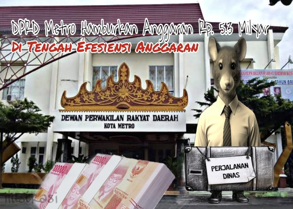 PESAGIRAYA, KOTA METRO— Ditengah gelombang efisiensi yang digelorakan pemerintah untuk menghemat pengeluaran negara, Dewan Perwakilan Rakyat Daerah (DPRD) Kota Metro justru melancarkan dugaan Korupsi, Kolusi dan Nepotisme (KKN) dengan menghambur-hamburkan anggaran hingga mencapai Rp 5.3 Milyar untuk urusan belanja perjalanan dinas yang dinilai tidak produktif. Fenomena ini menjadi gambaran soal bagaimana kebijakan pemerintah pusat seolah tidak digubris oleh DPRD Kota Metro.
