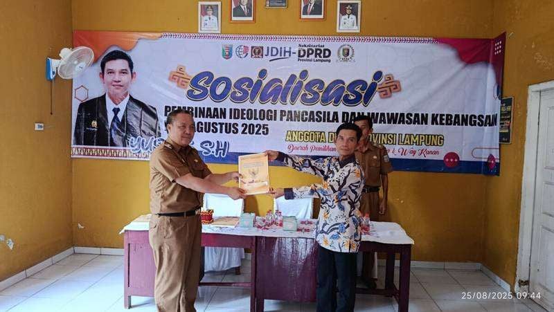 PESAGIRAYA, BANDARLAMPUNG — Anggota DPRD Provinsi Lampung Fraksi Partai Nasdem Yusee Sogoran menggelar sosialisasi Pembinaan Ideologi Pancasila dan Wawasan Kebangsaan di Kampung Pulau Batu dan Bandar Dalam Kecamatan Negeri Agung Kabupaten Way Kanan, Senin (25/08/2025).